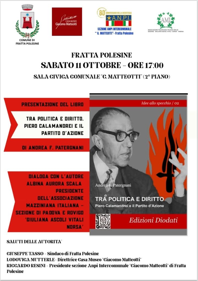(Università di Padova, Presidente del Comitato scientifico “Casa Museo Giacomo Matteotti”) e Paolo Veronesi (Università di Ferrara). Modera Pier Luigi Bagatin (Presidente dell’Accademia dei Concordi di Rovigo). L’iniziativa è patrocinata dai Comuni di Fratta Polesine e di Rovigo, dalla Provincia di Rovigo, dal CUR, dalla Casa Museo Giacomo Matteotti e dall’Accademia dei Concordi.